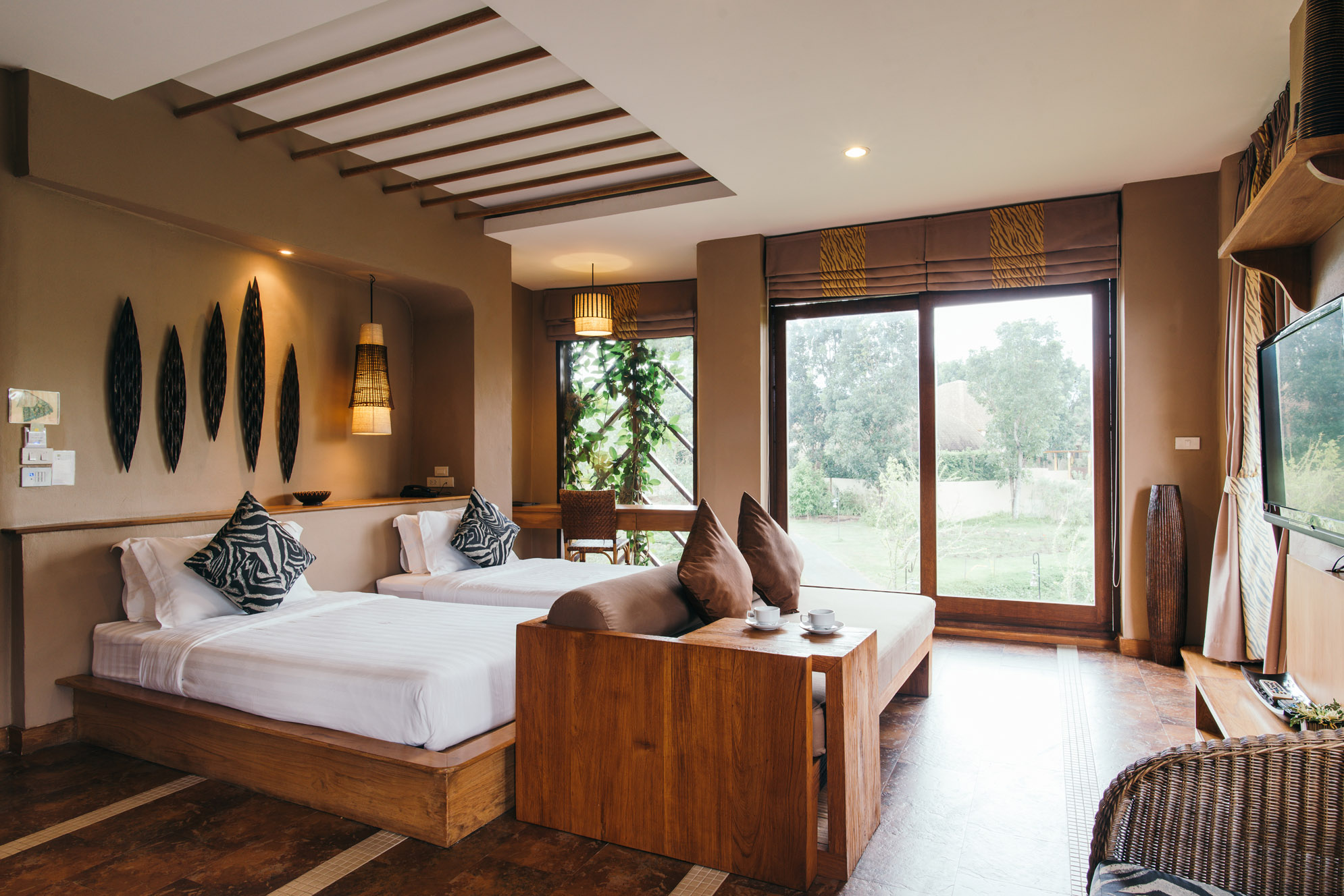 These light airy rooms boast large windows offering a view of mountain. The décor is both modern and elegant with safari style.